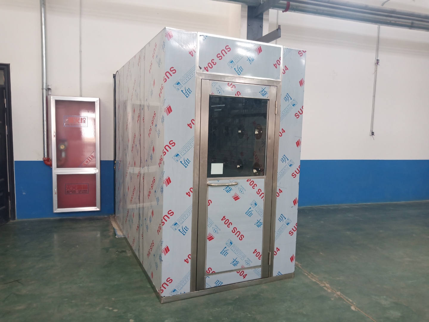 (6)風淋室正在吹淋時不準強制開門,若遇緊急意外情況,可按急停開關停機。